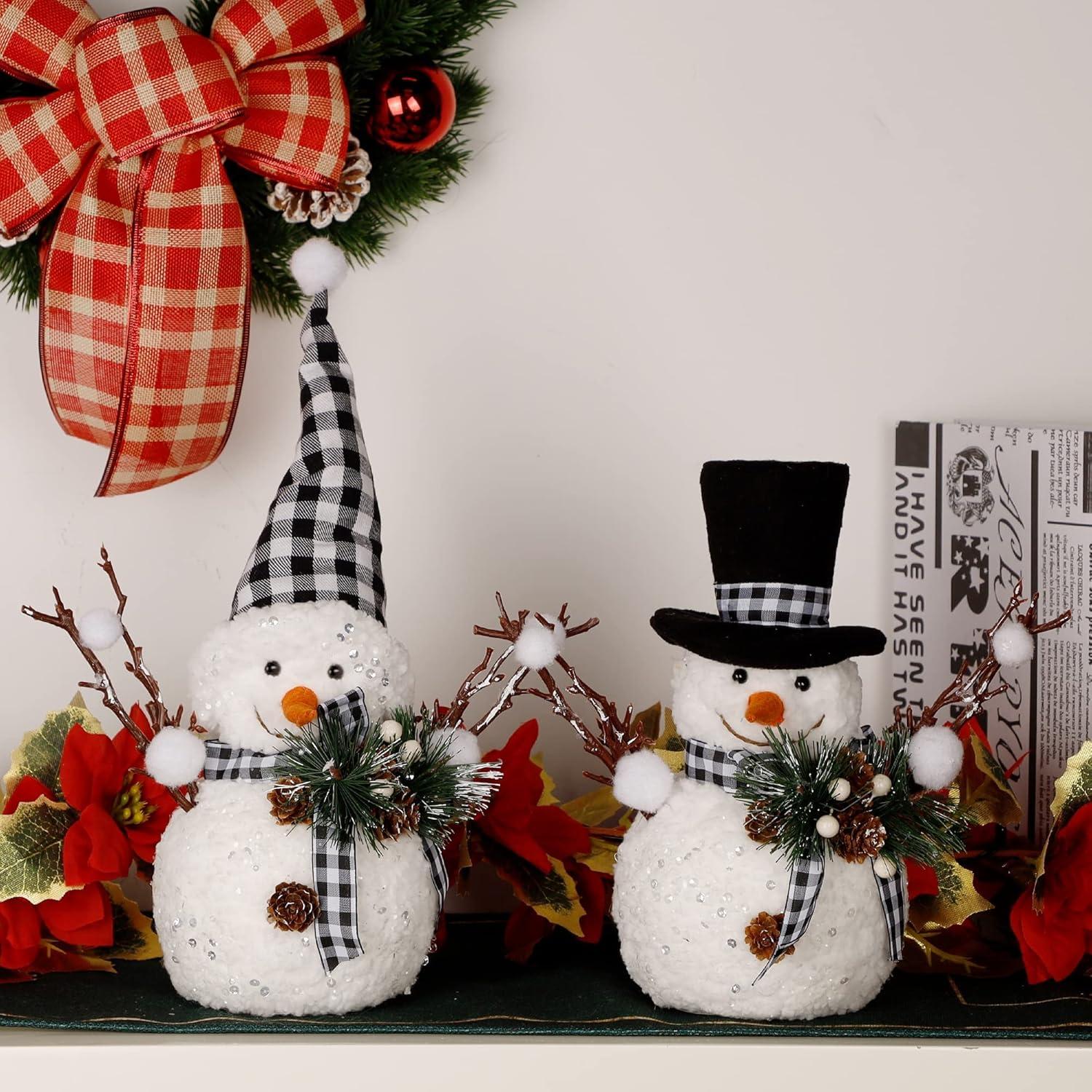 🎅 Christmas Decoration: Our Christmas tabletop snowmen wearing plaid Christmas hat and checked top hat are exquisite and well-made, they look pretty on the table as a nice addition to your winter decor.