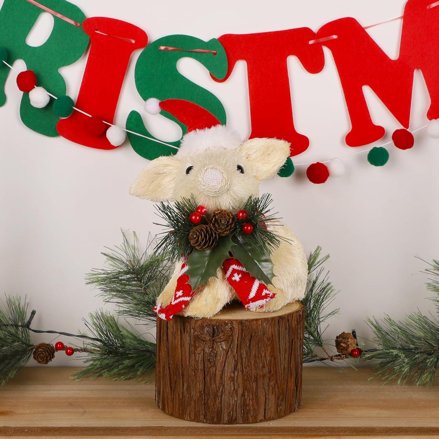 winemana Christmas Tabletop Decorations, Sisal Pig Figurine with Santa Hat Scarf for Home, Rustic Farmhouse Christmas Ornaments Xmas Holiday Winter Decor for Indoor Office Shelf Mantle Centerpieces
